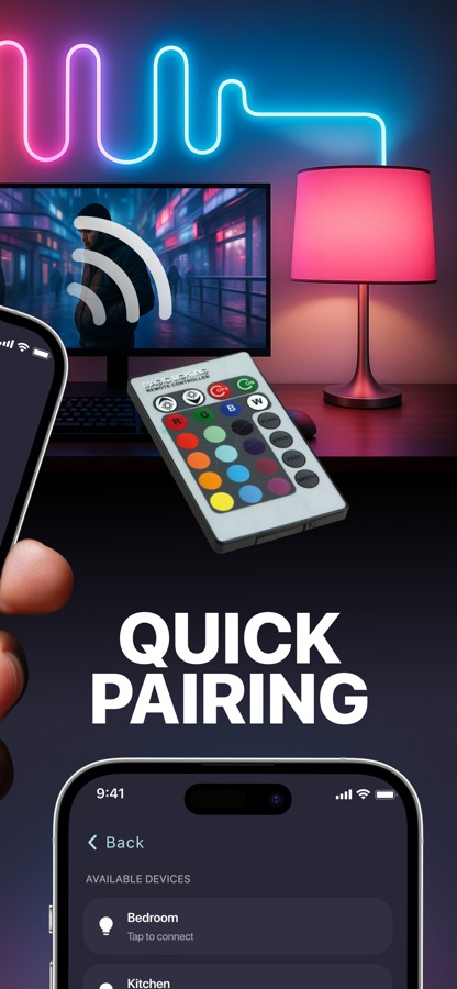 Контроллер светодиодных ламп и пульт дистанционного управления — мощное и интуитивно понятное мобильное приложение, разработанное для универсального управления вашими умными RGB-светильниками или полосами через Wi-Fi и Bluetooth. Будь то отдых дома, организация вечеринки или создание определенной атмосферы — у контроллера светодиодных ламп и пульта дистанционного управления есть все необходимое для легкой настройки настроения.