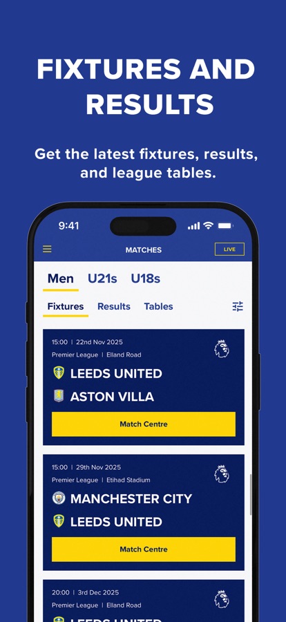 Live coverage is also available on matchday via the app and your LUTV subscription; so if you’re not at Elland Road roaring the team on, you can still stay updated on what is happening.