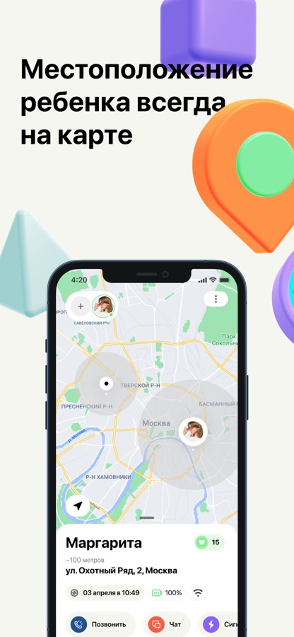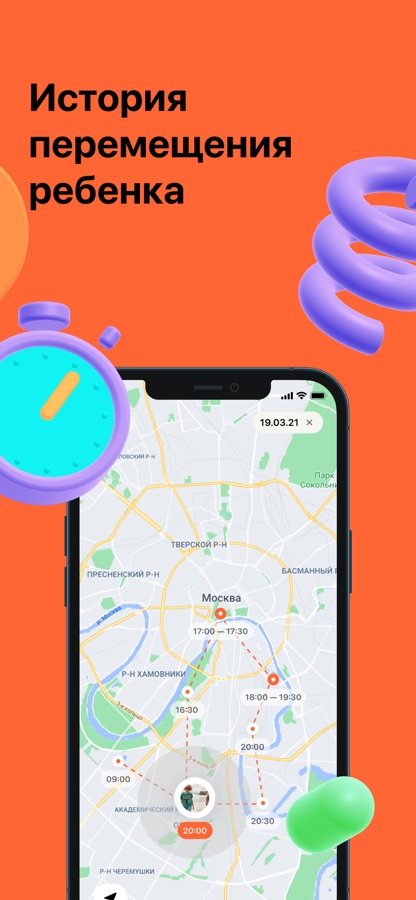 • Определение и отображение точной геолокации ребенка на карте*