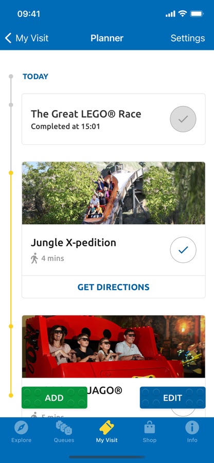 · Plant euren Besuch – alle wichtigen Informationen erfahrt ihr schon vor eurer Ankunft: Anreise, Öffnungszeiten, Barrierefreiheit und vieles mehr. Mit dem neuen Erlebnis-Planer seht ihr, welche Fahrgeschäfte für euch am besten geeignet sind. Ihr könnt jetzt eure Tickets und Jahreskarten in der App speichern, um schnell und einfach ins LEGOLAND® Deutschland zu gelangen.