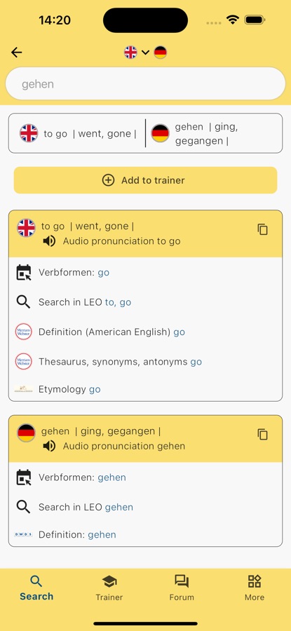 Или вы хотите углубить уже имеющиеся знания иностранного языка? С нашим бесплатным Словарным тренером вы можете учиться в любое время, используя систему словарной картотеки.