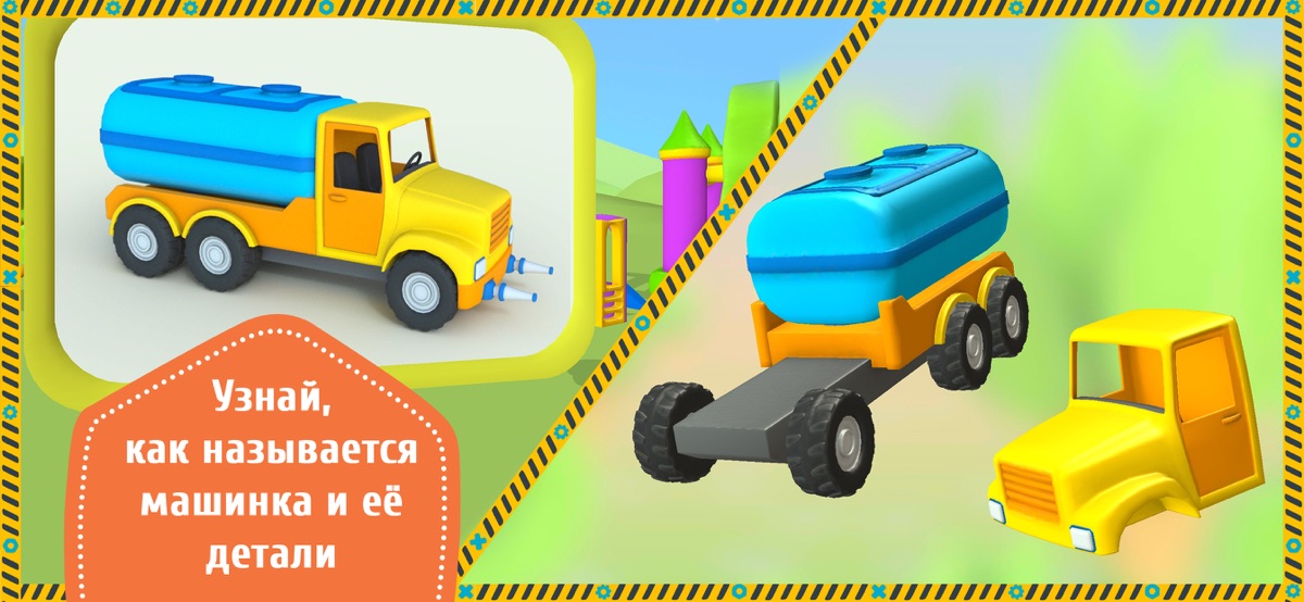 Как устроены машины, как называется каждая деталь? В волшебном мире машинок ребенок узнает, для чего нужны рабочие машины, сам соберет их из деталей и сможет управлять ими. Собирайте машинки, как Грузовичок Лёва! Собрать машинку очень просто: перетяните детали в центр в нужном порядке. Ошибиться или проиграть нельзя! После сборки каждая из машинок оживет и с вашей помощью будет выполнять важные задачи в красочном 3D-мире.