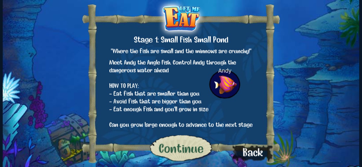 • In Let Me Eat : Feeding Frenzy, you must control a hungry marine predator intent on munching as many other fish as possible.