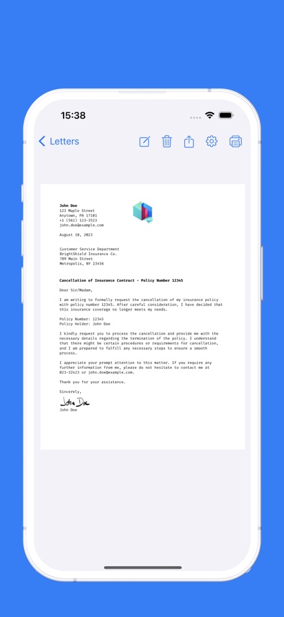 • Sharing & Exporting: Share your letters digitally or export them as PDFs for distribution across various platforms.