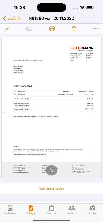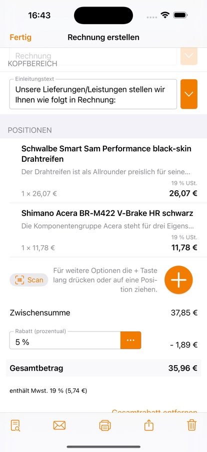 Sie wollen auf Kunden, Belege oder Produkte zugreifen? Kein Problem mit der Lexware Office App. Neben der regulären Erstellung von Ausgangsbelegen wie Angeboten und Rechnungen können Sie mit der Lexware Office App auch Belege und Positionen duplizieren. Versenden Sie E-Mails von Ihrer eigenen E-Mail-Adresse und auch Anhänge hängen Sie ohne Probleme an die E-Mail an.