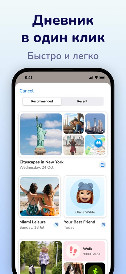 Добавляйте неограниченное количество фотографий и аудиоклипов (скоро) к своим записям, что позволит вам полностью запечатлеть и пережить каждый драгоценный момент.