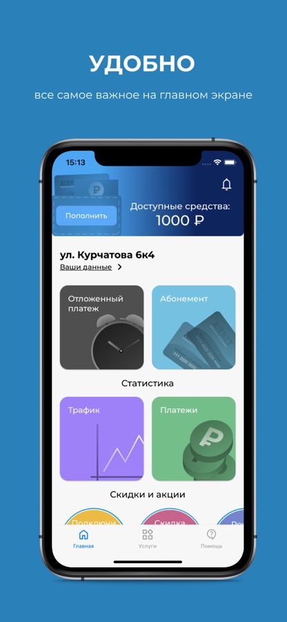 В приложении мы предусмотрели все для удобства, чтобы находясь в любой точке мира была возможность вносить оплату, подключать услуги и контролировать свой Личный кабинет.