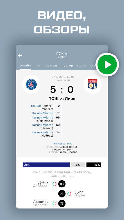 • Текстовые онлайн трансляции всех матчей, календарь чемпионата Франции и турнирная таблица;