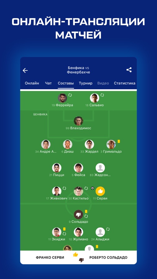 • Полная статистика всех матчей чемпионата в режиме реального времени, а также статистика игроков;