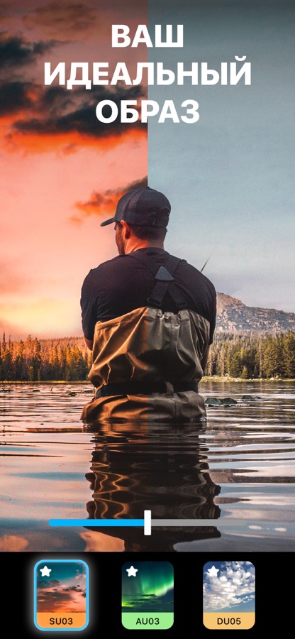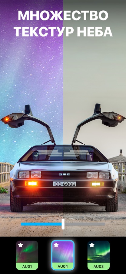 Измените небо на фотографии за пару секунд. Более 60 вариантов «неба» на любой случай: рассветные оттенки, резкие полуденные цвета, яркие закаты, сумерки и ночь в пустыне. Подберите цвет неба в тон ландшафту, добавьте облака или эффект легкого бриза.