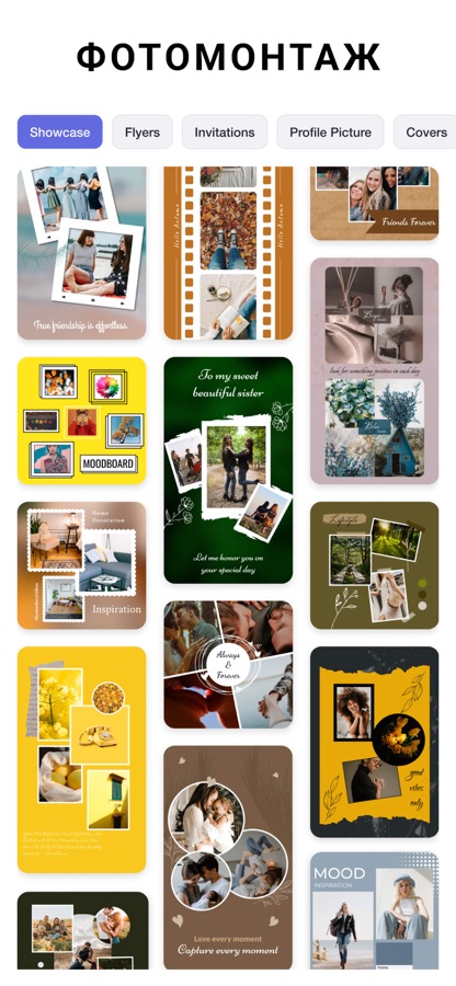 • Создавайте фотоколлажи, объединяя несколько изображений из огромного числа шаблонов и макетов