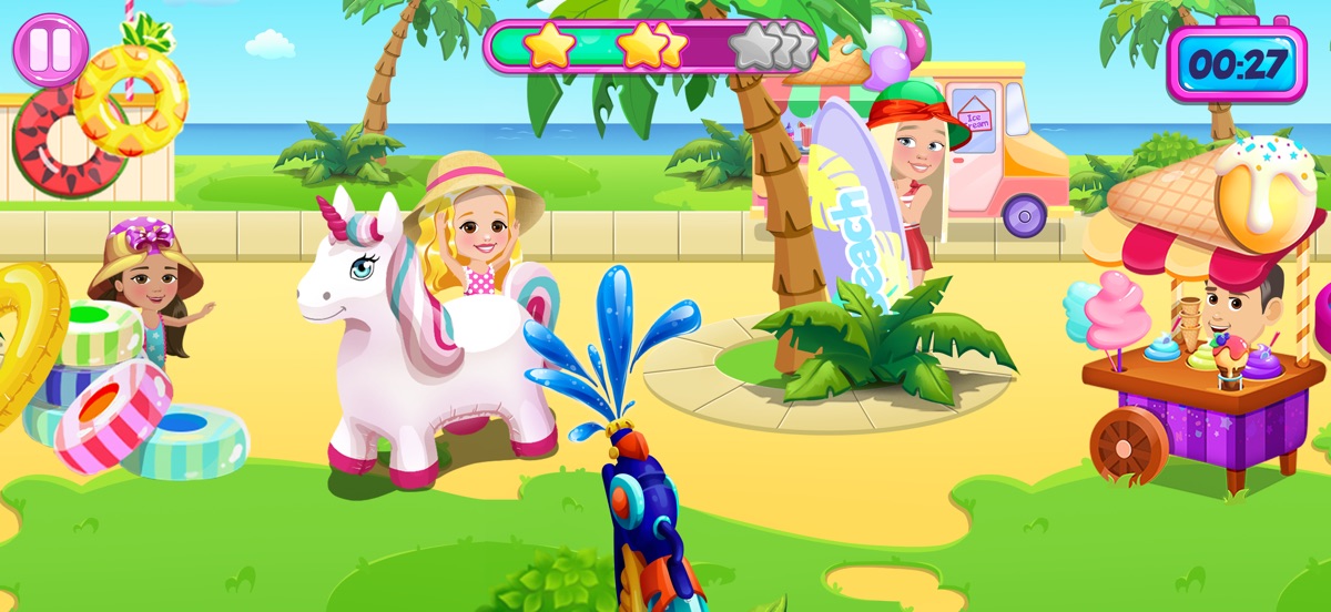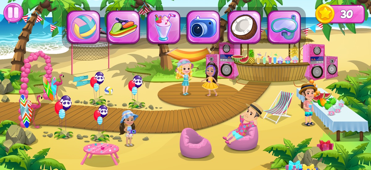 Родители Насти приготовили для ее друзей веселые игры. Мы будем играть в увлекательную игру с переодеванием, выбирая красивые наряды и создавая стильные прически и макияж. Наша вечеринка пройдет в разных местах. Мы подготовили несколько мини-игр на пляже. Настя и ее друзья будут играть в волейбол, кататься на водном мотоцикле, заниматься дайвингом и готовить вкусные пляжные коктейли. А еще они отправятся в путешествие на яхте и сфотографируют настоящих дельфинов.