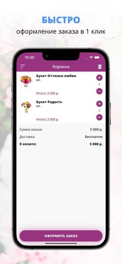 Скачивайте наше приложение и заказывайте цветы с доставкой всего в пару кликов!