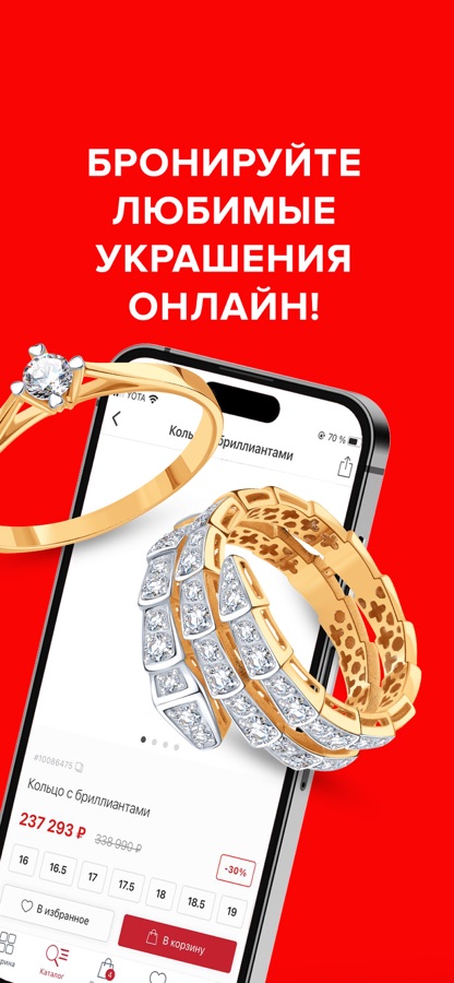 Все ювелирные изделия из золота в мобильном приложении ювелирной сети «Линии Любви»! У нас вы сможете найти ваши самые любимые украшения с бриллиантами, жемчугом, фианитами, сапфирами. Узнавайте первыми о всех новинках, акциях, скидках и закрытых распродажах для активных пользователей нашего мобильного приложения!