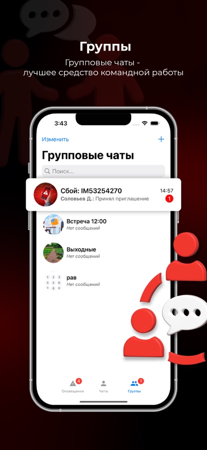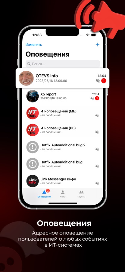 Приложение для коммуникации между сотрудниками в индивидуальных и групповых чатах. Позволяет осуществлять адресное оповещение пользователей о любых событиях в ИТ-системах.