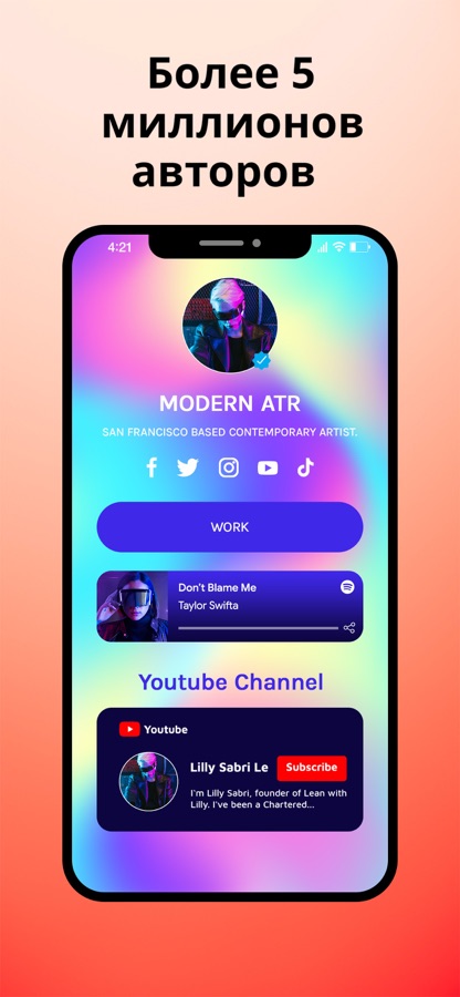 Более 3 миллионов художников, производителей и творческих предпринимателей по всему миру использовали Instabio для создания ссылок на веб-сайты или интернет-магазины.