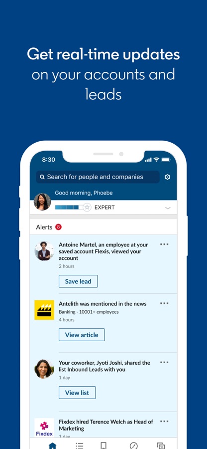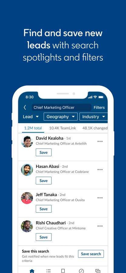 Whether you are waiting for a meeting, traveling between clients’ offices, or waiting in line for coffee, Sales Navigator Mobile gives you access to Sales Navigator’s key sales features where you need them most: everywhere.
