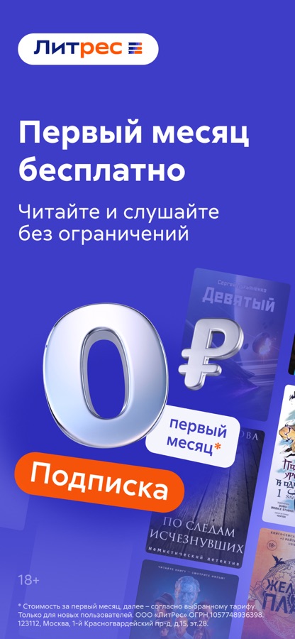 Подписка «Книжная вселенная» — доступ к более чем 800 000 книг, аудиокниг и подкастов + 1 000 новинок и эксклюзивов каждый месяц за 599 ₽.