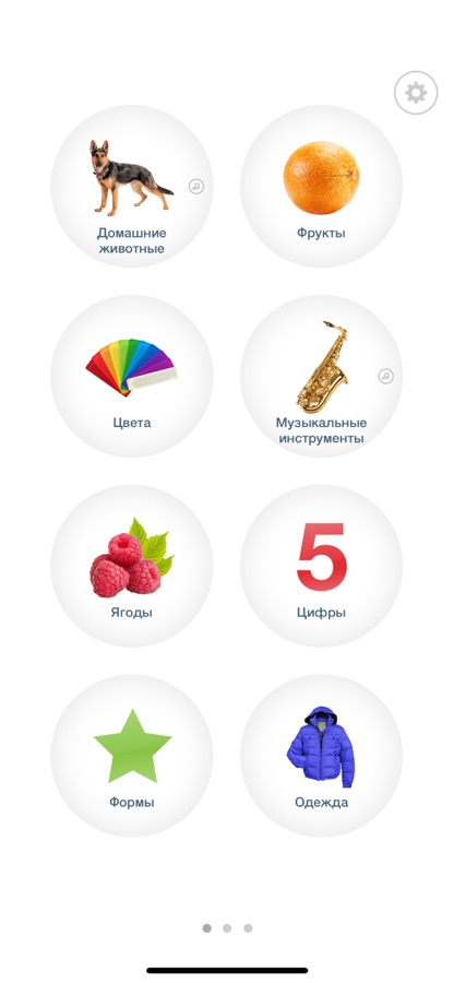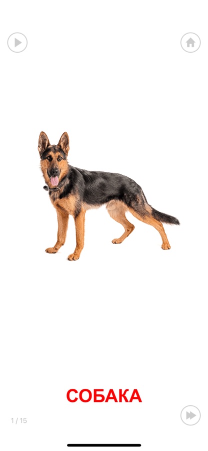 Мягкий женский голос называет, что изображено на карточке. Вы также можете произносить названия предметов самостоятельно, отключив озвучку в настройках.