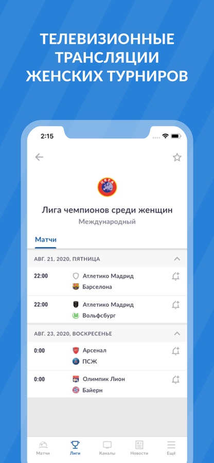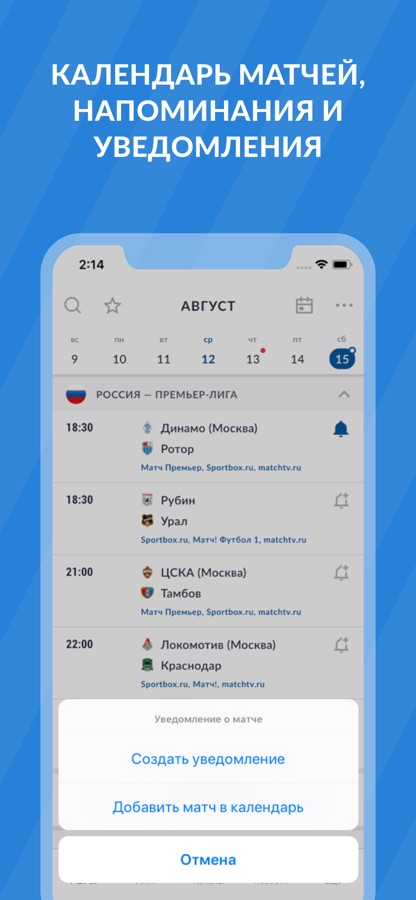 — Настраиваемые уведомления о матчах: Получайте напоминания за 24 часа, 1 час или за 5 минут до начала игры.