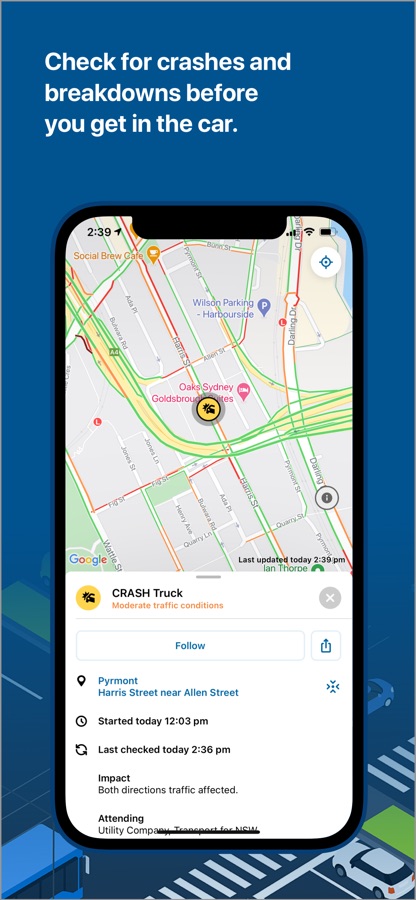 — Incident information for Sydney and Regional NSW including crashes, breakdowns, fires, floods, snow, public events and roadworks.