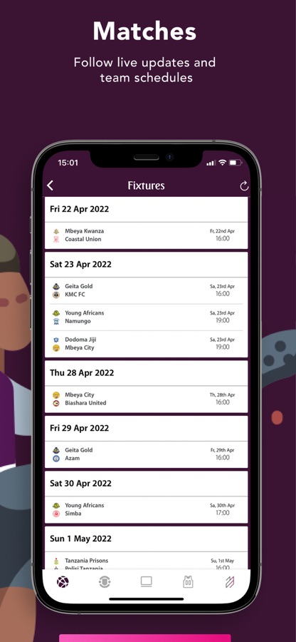 A football app for the Tanzania Premier League! Be in the loop of every game as it unfolds! Loads of ->