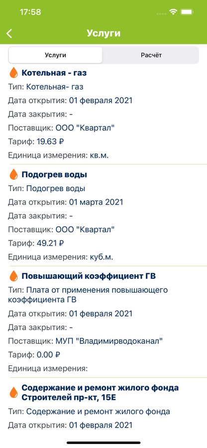 — Посмотреть подключенные услуги и формулы расчётов начислений по ним