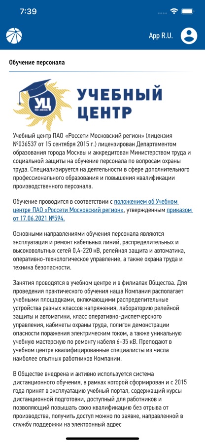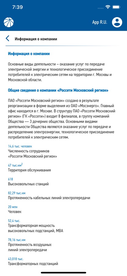 Мобильное приложение — личный кабинет работника «Россети Московский регион».