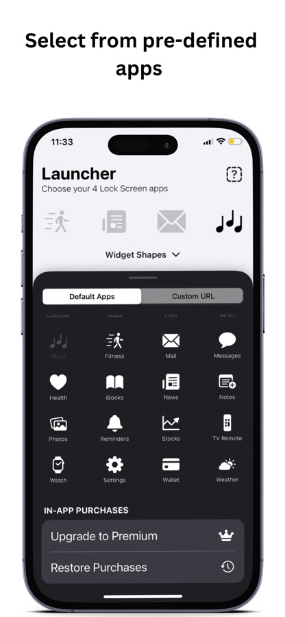 -The main dashboard for the app, is split into the top section for a quick widget preview and the bottom section where we show Apple iOS apps and 3rd party apps that can be launched from the lock screen widget.