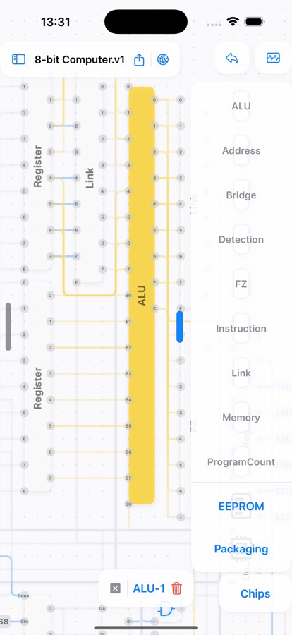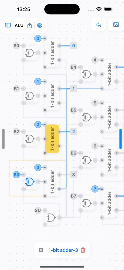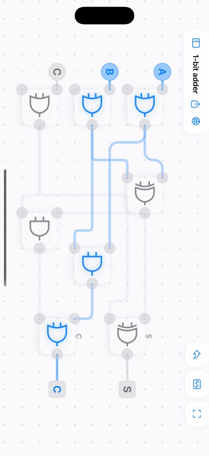 This app focuses on easy interaction design and user-friendly diagram representation. Thanks to the built-in frequency generator and number display, you can concentrate on designing your circuits. You can draw, analyse and simplify logic gate networks with ease, without the need for soldering or dismantling breadboards. Ultimately, it provides a clear circuit diagram in schematic format. This allows you to see each connection and how the logic gate have changed. You can then reuse your design by packaging it as a chip.
