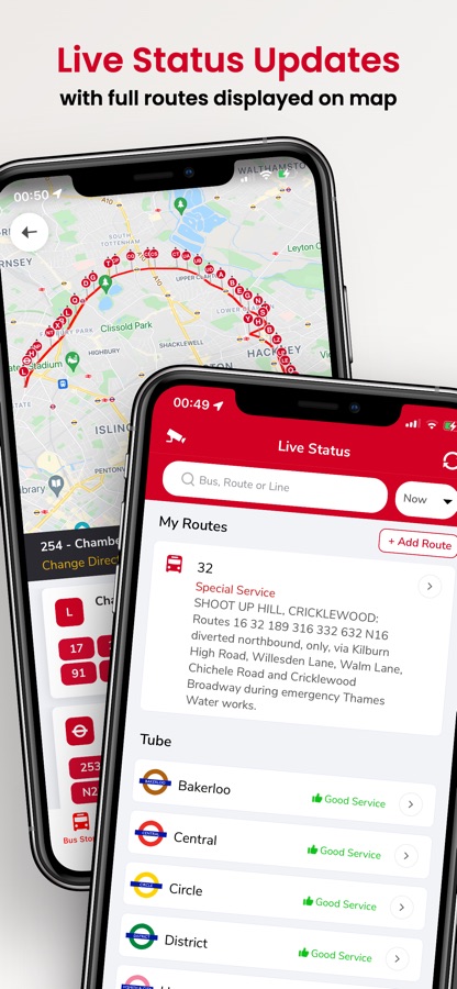 * Travel Status Bus, Tube & National Rail Disruption Updates — See alerts on your most used lines
