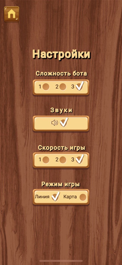 В настройках можно изменить скорость появления бочонков, а так же сложность бота.