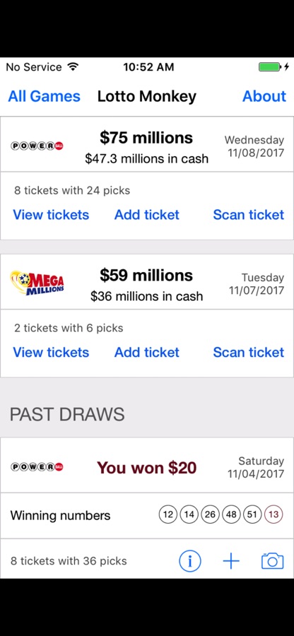 @lottomonkeyapp turns your smartphone into a lottery ticket checker. Scan Powerball and Mega Millions tickets, then share them with your lottery pools, family, friends, and co-workers. @lottomonkeyapp also make lottery results conveniently available on your smartphone, in your hand!