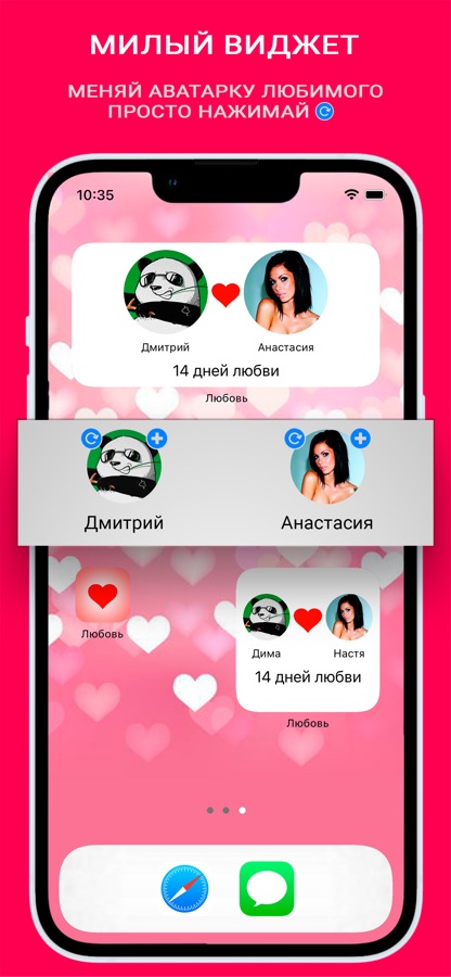 Кроме основной части приложения есть ещё виджет любви, который можно настроить на любой вкус — выбрать цвет текста, показывать сколько дней вместе или не отображать. Но самое главное — можно каждый день менять аватарку Вашего любимого человека просто кликнув на значок, либо выбрать на виджет фото любимого. Это будет создавать настроение и придавать сил выстраивать общение и создавать близкие отношения.