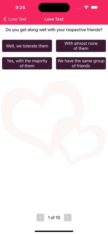 Love Test — это бесплатное приложение, которое предлагает вам забавную викторину о любви, чтобы узнать совместимость с вашим партнером.