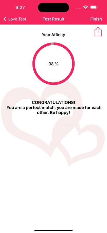 Мы были бы признательны, если бы вы могли дать нашему настоящему приложению для проверки любви положительный отзыв, это поможет нам продолжать работать над этим и разрабатывать больше приложений для тестирования любви и новых функций, таких как добавление имени