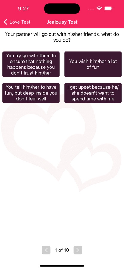 -Вы найдете лучшие тесты отношений: любовный счетчик или сканер любви, тесты дружбы или даже тесты на ревность.