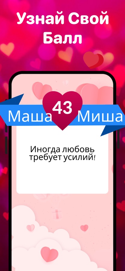 Хотите узнать, влюблены ли вы в кого-то? Или насколько вы симпатичны? Или хотите узнать, есть ли любовная линия? Есть ли шанс на возможные отношения? Попробуйте это приложение-калькулятор любовных тестов — именно то, что вы ищете. Хотите проверить процент любви со своим сердцеедом? Чтобы проверить, что вы чувствуете, на самом деле это безумная любовь или просто обман. Возьмите эту забаву, только для развлечения, викторину калькулятора любви и проверьте, что говорит чтение в счетчике любви. Приложение для проверки любовника запустит численный алгоритм для сканирования совпадения вашего любовного имени, чтобы рассчитать ваш счет любви. Приложение Love Tester разработано с уникальным девизом, который заключается в том, чтобы найти настоящую любовь, проверив счет любви через имя любви.