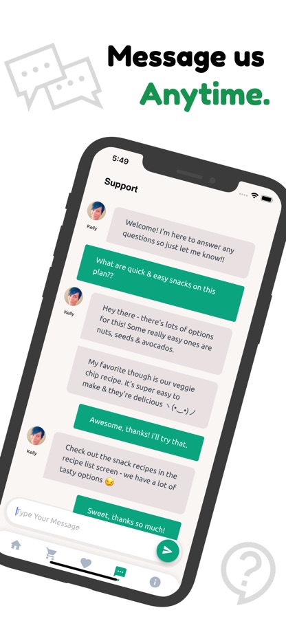 Chat support with Kelly — our in-house diet counselor.