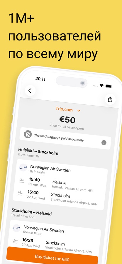 Испытайте удовлетворение от знания того, что вы обеспечили абсолютно лучшую ценность за свои деньги на путешествие. Скачайте сегодня и присоединяйтесь к миллионам умных путешественников, которые больше никогда не переплачивают за авиабилеты или отели.
