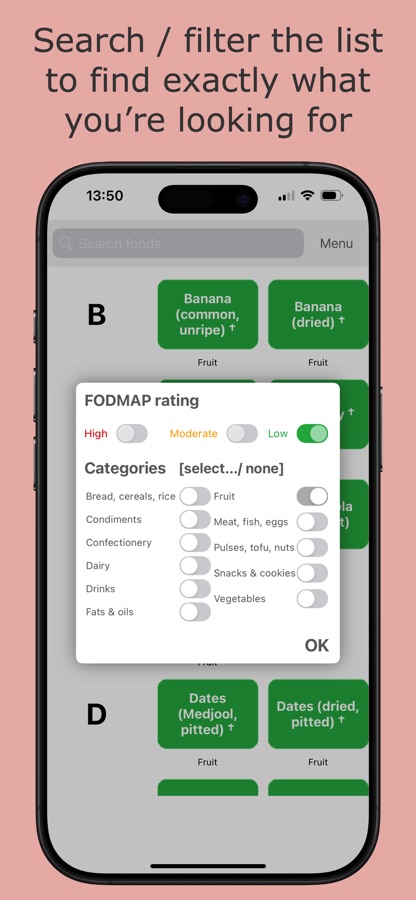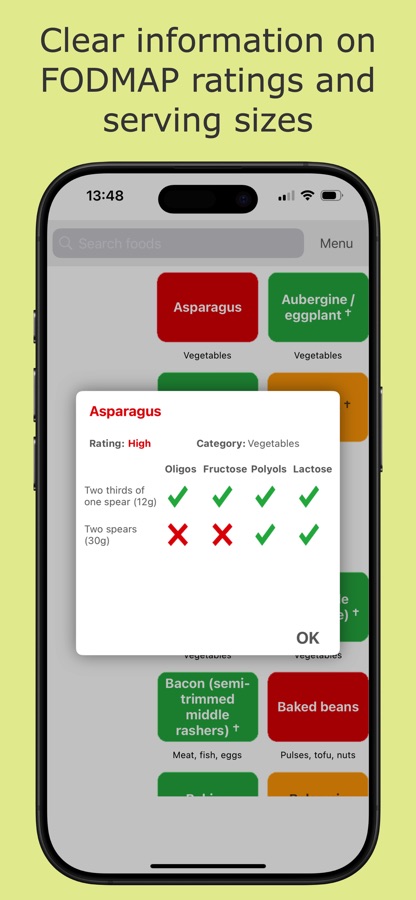* Powerful search & filter: find exactly what you need by searching for specific foods or filtering by category and FODMAP rating.