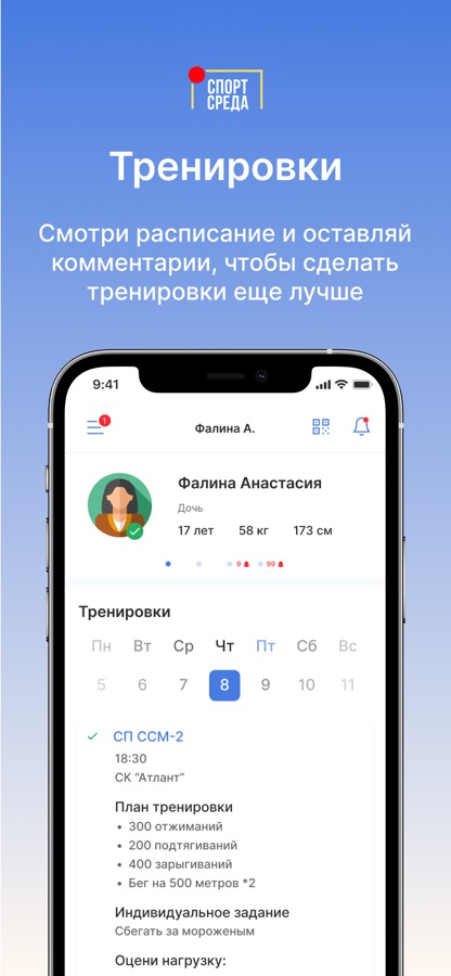 Приложение для спортсменов и их родителей и тренеров, зарегистрированных в системе «LSPORT».