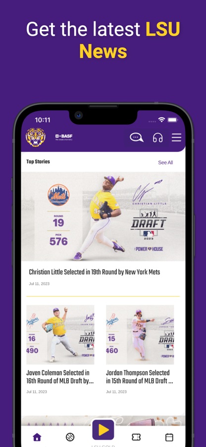 The official app of LSU Athletics brings fans closer to the Tigers than ever before. Featuring live audio, mobile ticketing, schedules, stats, team rosters, and exclusive content through LSU GOLD, the new and improved LSU Sports Mobile App has everything you need to support the Tigers all year long.
