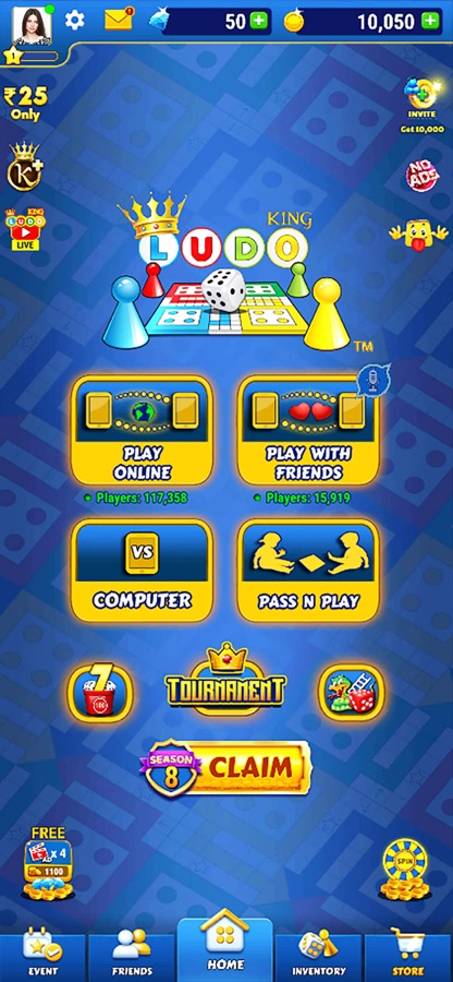 Ludo King is the modern version of the royal game of Parchisi, a game played between Indian kings and queens in ancient times. Roll the dice to play and move your tokens to reach the center of the board. Beat the other players to become the Ludo King. Play this dice game Ludo King. Best casual game in board games.