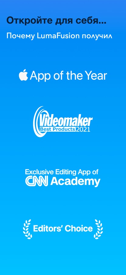 Перед вами «Приложение года 2021» по версии App Store, а также обладатель премии «Выбор редакции»! Золотой стандарт сторителлеров по всему миру. Удобное, интуитивно понятное приложение для видеомонтажа, разработанное специально для сенсорных экранов.