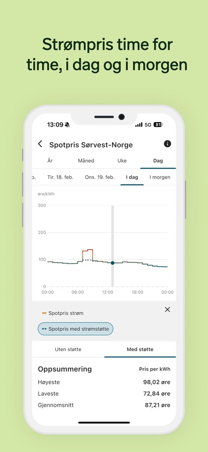 – Få push-varsel om strømprisen blir uvanlig høy eller lav