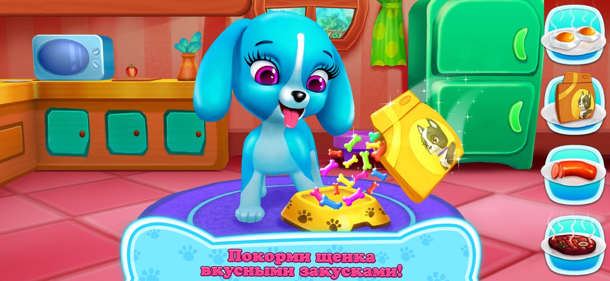 *Огромный выбор вкуснейших закусок, чтобы кормить голодного щенка!
