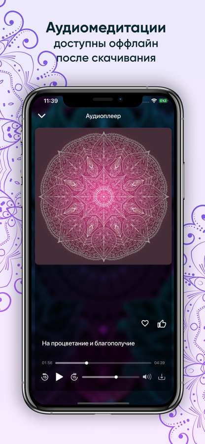 — аудиомедитации доступны оффлайн, что делает вашу постоянную практику эффективней;