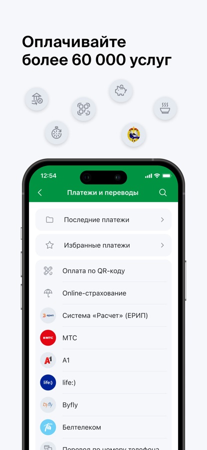 — Оплата услуг и покупок через ЕРИП (включая коммунальные платежи, штрафы, налоги и др.).