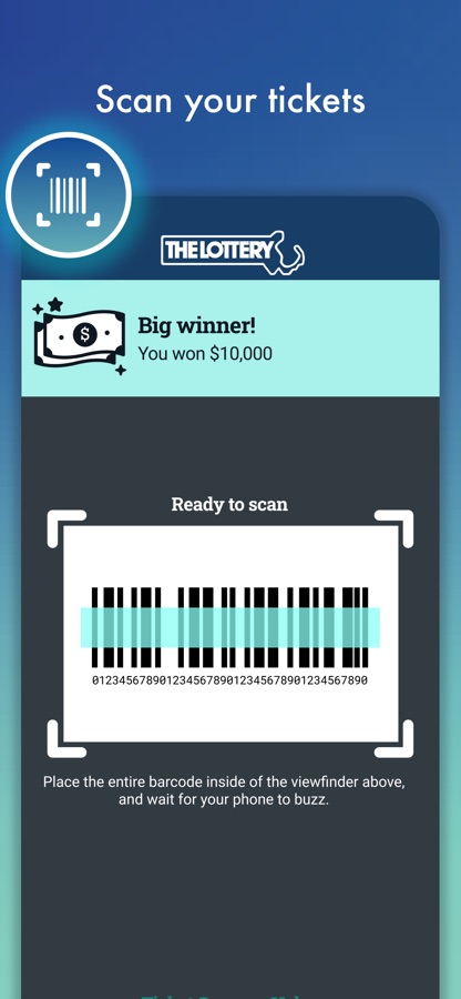 Welcome to the official Massachusetts Lottery App! Register for a Mass Lottery Player Account and start scanning tickets to check for winners. Claim prizes between $601 — $5,000 securely & conveniently from the app by having winnings added directly to your bank account.